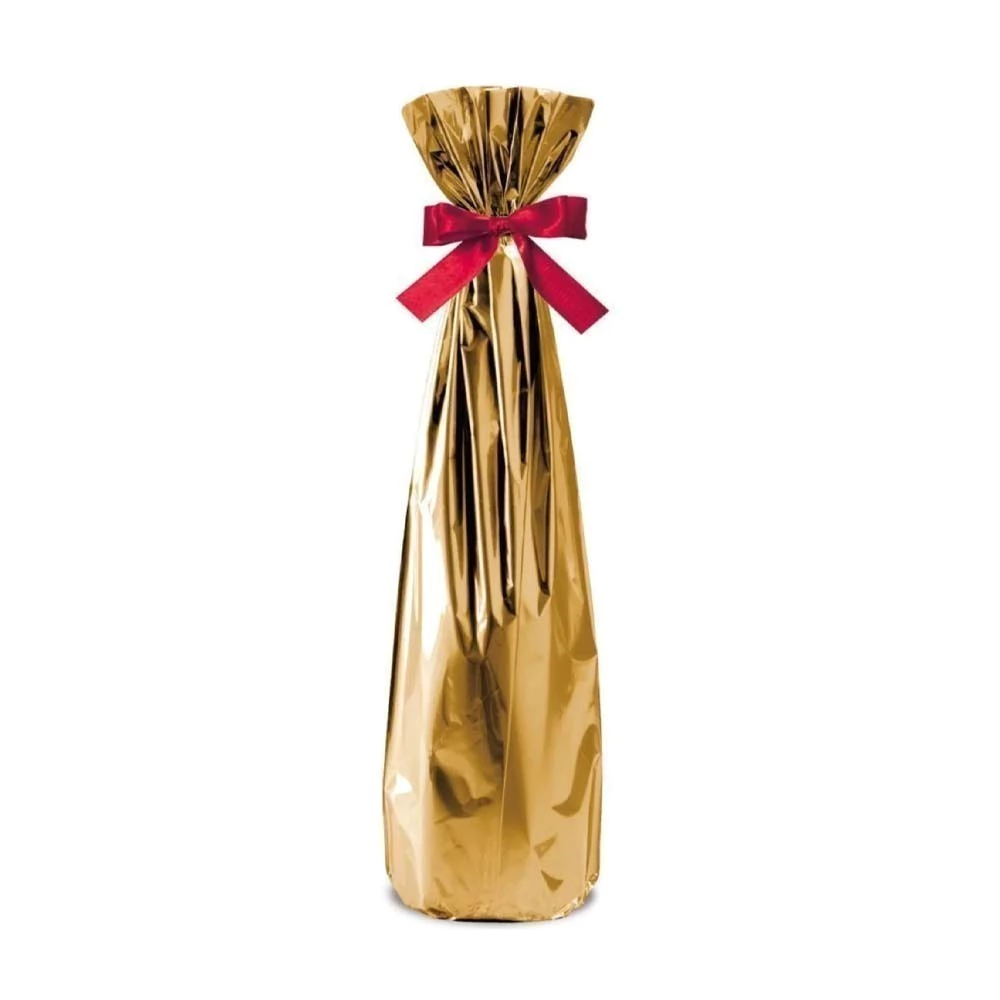 Saco Metálico para Presente - Saco de 15x45cm (Cabe 1 garrafa de 750ml, formato padrão). Inclui laço mágico de 18x33mm. O saco e o laço estão disponíveis em cores sortidas, de acordo com a disponibilidade de estoque. Caso deseje escolher as cores, entre em contato com nossa equipe pelo WhatsApp: 21 97117-9940.